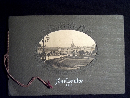 Karlsruhe, Ansichtskartenalbum mit eingeschobenen Ansichtskarten in schwarz-weiß-Fotografie