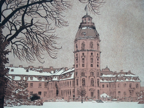 Gustav Kampmann: Karlsruhe, Grh. Schloss, Lithographie der Kunstdruckerei Künstlerbund Karlsruhe. Format ca. 39 x 29 cm.