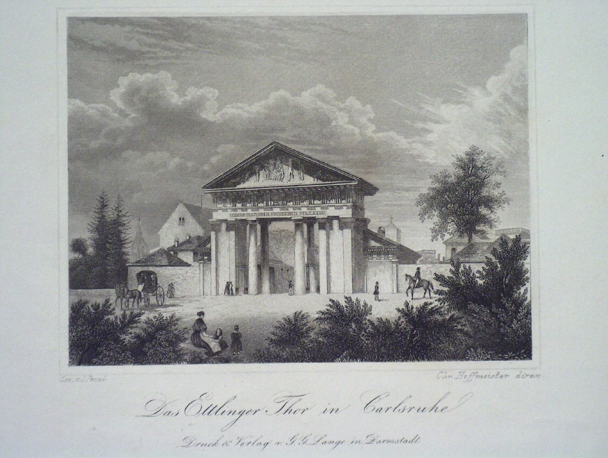 Das Ettlinger Thor in Carlsruhe. Gez. von J. Pozzi, Chr. Hoffmeister direx, Druck und Verlag von G.G. Lange in Darmstadt