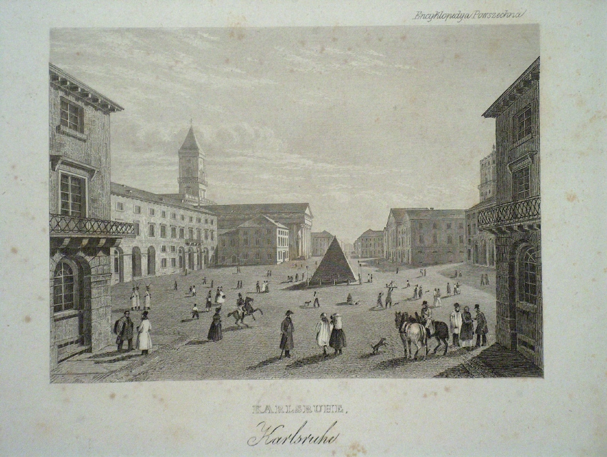 Karlsruhe, Ansicht des Marktplatzes von Norden. Aus: Encyklopedya Powszechna.