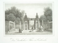 Das Ettlinger Thor in Carlsruhe. Gez. von J. Pozzi, Chr. Hoffmeister direx, Druck und Verlag von G.G. Lange in Darmstadt