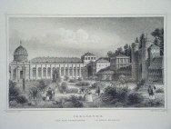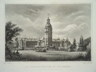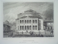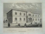 Das neue Academie Gebäude in Carlsruhe. Gez. v. J. Pocci, Chr. Hoffmeister. Druck und Verlag v. G.G. Lange in Darmstadt.