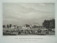 Der Eisenbahnhof in Carlsruhe. Gez. von L. Hoffmeister, Stahlst. v. L. Hoffmeister, Druck und Verlag von G.G. Lange in Darmstadt