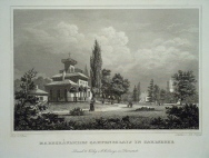 Rondell mit dem Palais der Markgrafen von Baden. Gez.v. J.Pozzi, Stahlstich von J. Richter. Druck und Verlag v. G.G. Lange in Darmstadt.