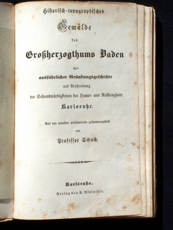 neuesten Hülfsmitteln zusammengestellt von Professor Schuch. Mit 17 Ansichten nebst Plan von Karlsruhe und einer Eisenbahnkarte. Karlsruhe, Verlag von A. Bielefeld.