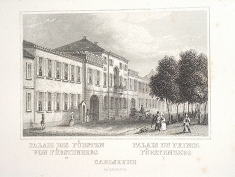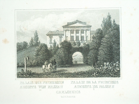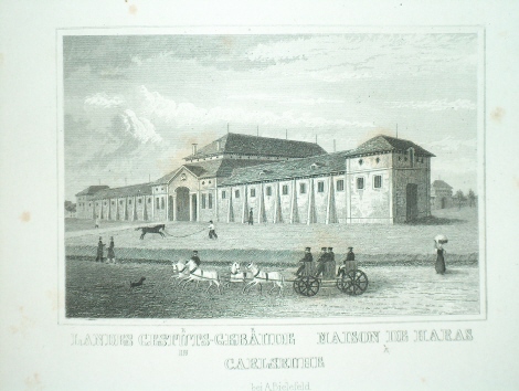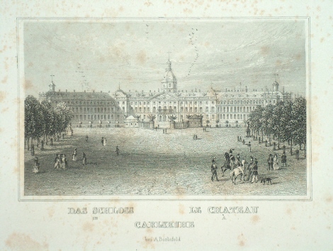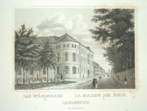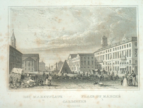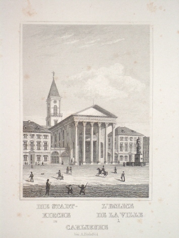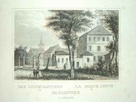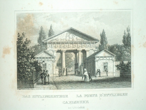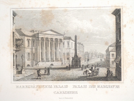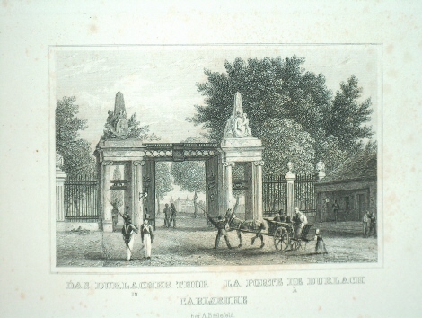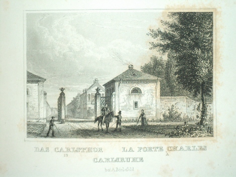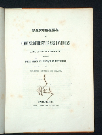 Panorama de Carlsrouhe et de ses environs avec un texte explicatif, précédé d´une notice statistique et historique du Grand Duché de Bade. Carlsrouhe chez A. Bielefeld, Libraire. Imprimerie de