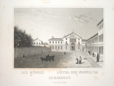 23 Seiten Text in französischer Sprache. Eine große Stahlstich-Ansicht des Marktplatzes (13 x 9 cm) und 16 kleinere Stahlstich-Ansichten (5,5 x 8,5 cm). Friedrich Lautenschlager: Bibliographie der