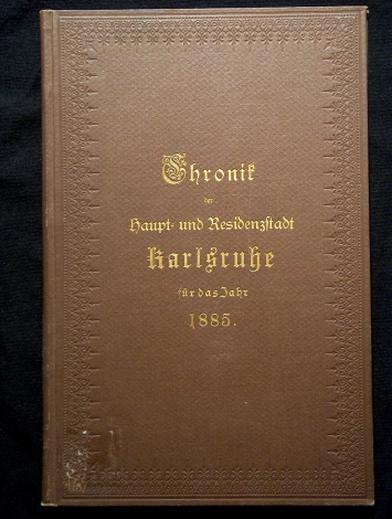 Chronik der Haupt- und Residenzstadt Karlsruhe für das Jahr 1885. Zusammengestellt im Auftrag der Städtischen Archivkommission. Karlsruhe, Druck und Verlag der G.Braun´schen Hofbuchhandlung, 1886. (Lautenschlager 28052) ...mehr.