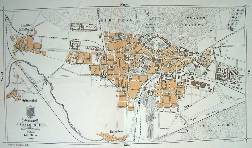 Plan der Stadt Karlsruhe, für die Hand der Schüler bearbeitet von Karl Bürkel