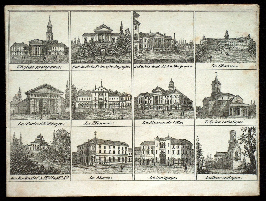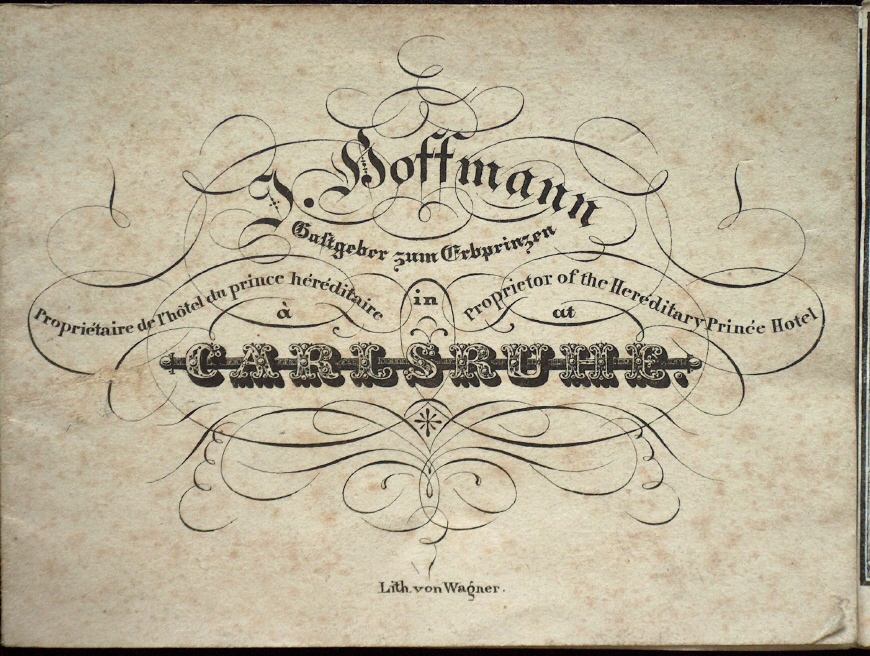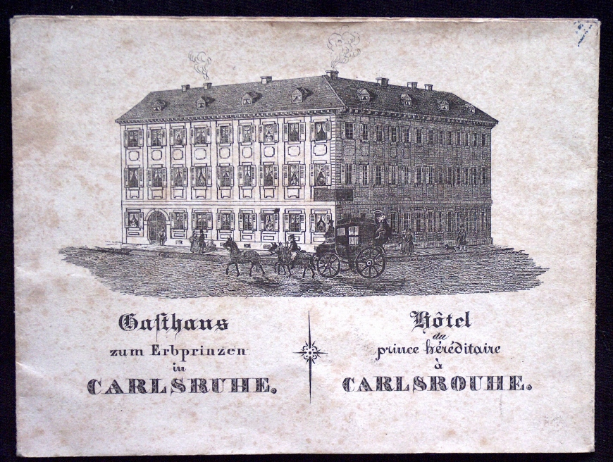 Plan von Carlsruhe, Teil eines Hotelprospektes des Gasthauses Zum Erbprinzen, um 1835.