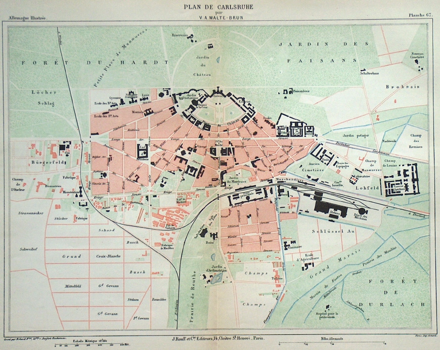 Plan de Carlsruhe par V.A.Malte-Brun, J.Rouff et Cie. Editeurs, Paris, um 1885