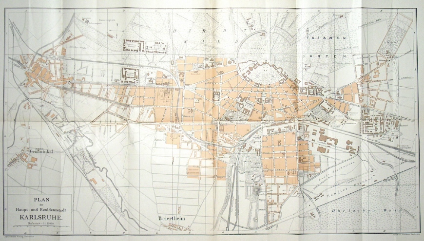 Maßstab 1:10.000, J. Bielefeld Verlag Karlsruhe, Druck L. Glockner Karlsruhe, mehrfach gefaltet, Format ca. 62 x 34 cm, ohne Jahr, um ca. 1900 [# 144]
