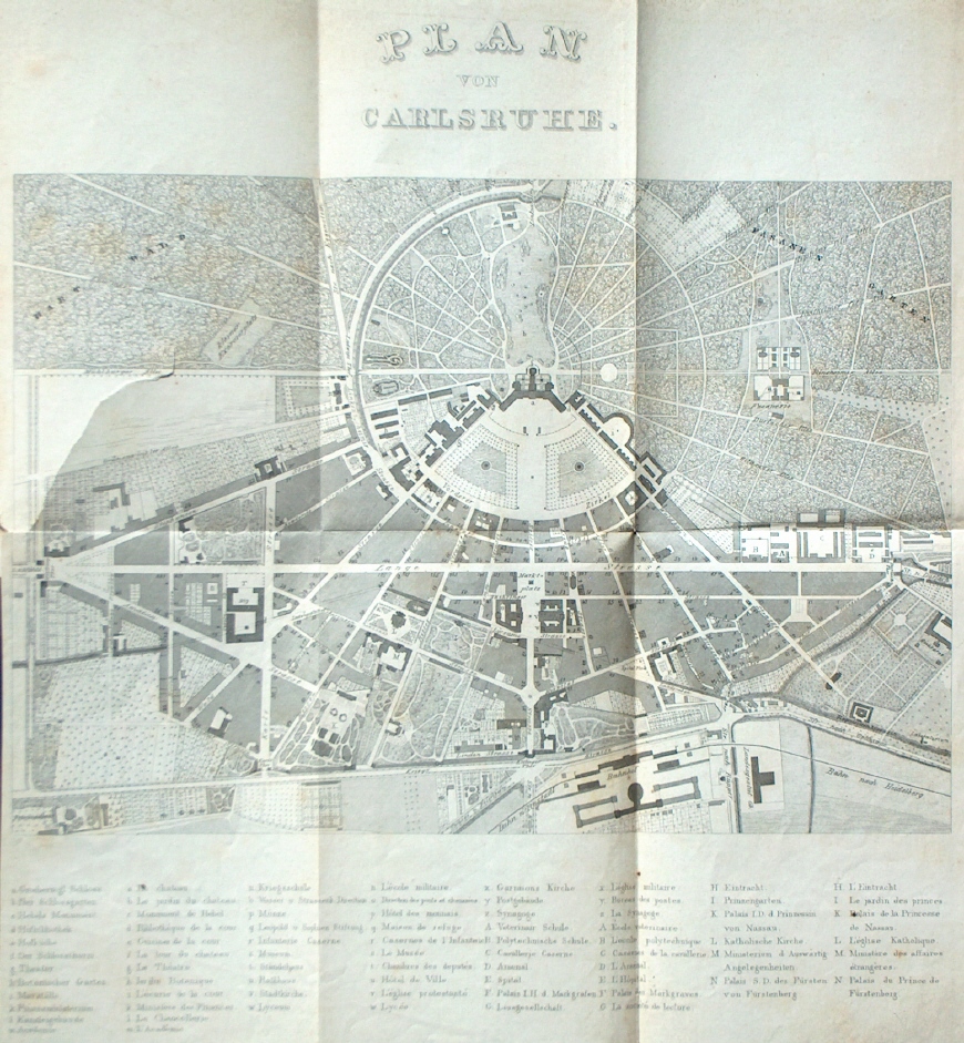 Plan von Carlsruhe. Aus: Historisch-topographisches Gemälde des Großherzogtums Baden mit ausführlicher Gründungsgeschichte und Beschreibung der Sehenswürdigkeiten der Haupt- und
