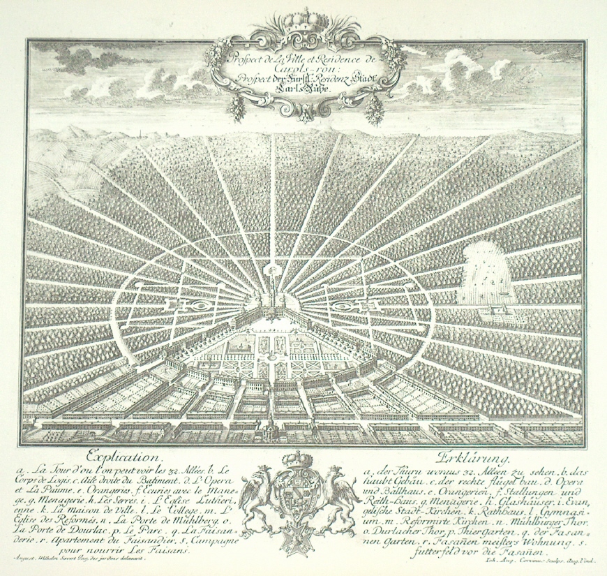 Prospect de la Ville et Residence de Carols-rou. Prospect der fürstl. Residenz Stadt Carls Ruhe