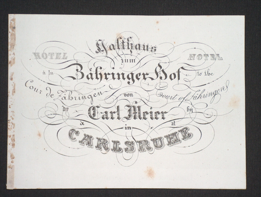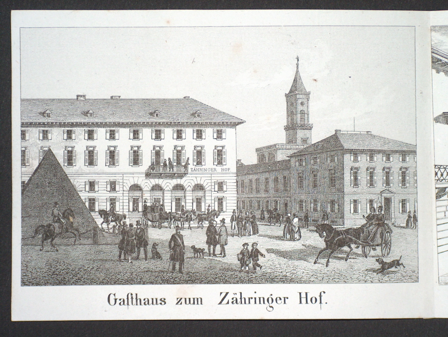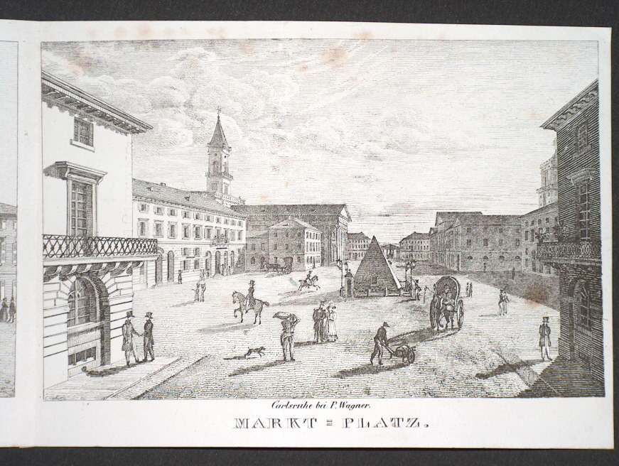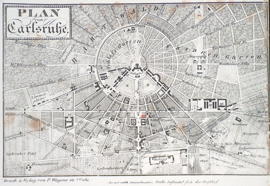 Plan von Carlsruhe. Teil eines Hotelprospektes des Zähringer Hofes am Marktplatz. Um 1845.