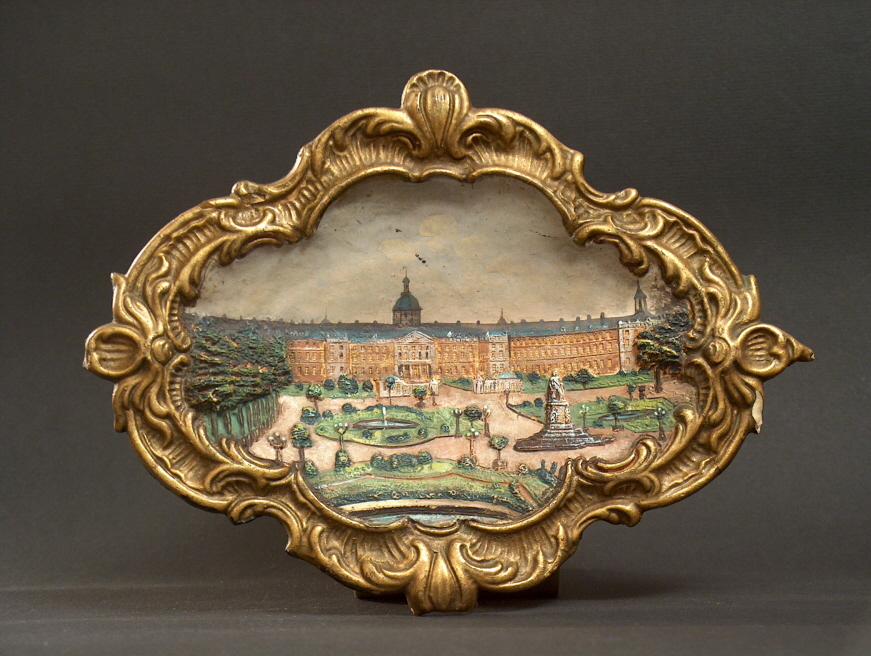 Gipsrelief mit Ansicht des Schlosses. Ca. 21 x 16 cm. Alter nicht bekannt.
