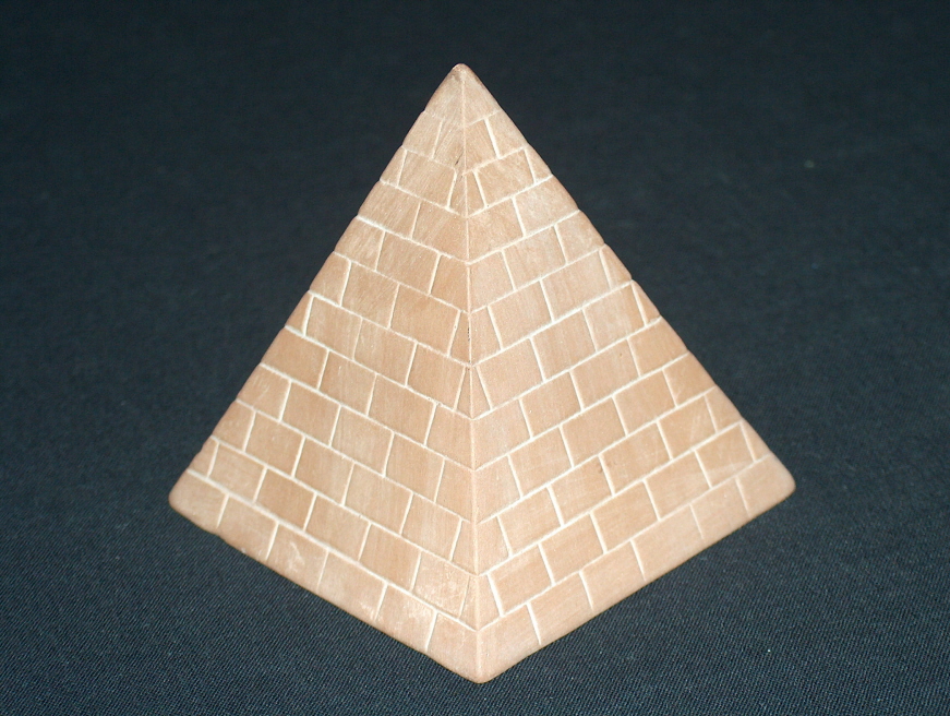 Modell der Pyramide, ca. 10 cm hoch, Werbung einer Karlsruher Bank. Karlsruher Majolika.