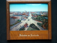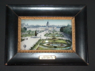 “Schloss zu Karlsruhe” Metallrelief, ca 14 x 11 cm. Vermutlich ursprünglich mit Holzrahmen. Um 1900.
