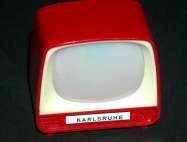 Kleiner Fernseher mit Ansichten von Karlsruhe.