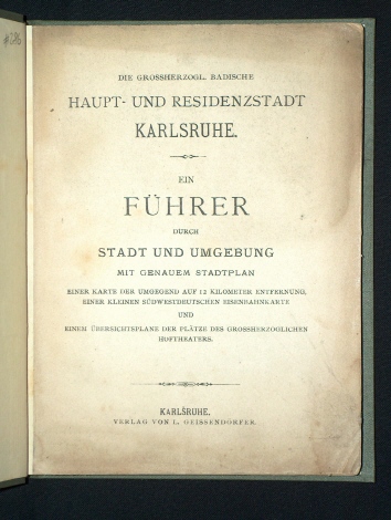Die Großherzoglich Badische Haupt- und Residenzstadt Karlsruhe. Ein Führer durch Stadt und Umgebung mit genauem Stadtplan. Karlsruhe. Verlag von L. Geissendörfer, ohne Jahr, um 1882. Format